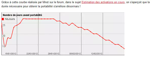 Le délai de la portabilité, concernant les abonnés Free Mobile souhaitant conserver leur ancien numéro de mobile, commence enfin à être raisonnable. Il y a quelques semaines, celui-ci était encore supérieur à 1 mois, mais il diminue presque chaque jour. Ainsi selon les estimations de freemobile.toosurtoo, il est maintenant de 13 jours.
