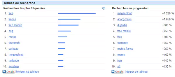 Google Tendances et Recherches : Médaille d’or et de bronze pour Free en 2012