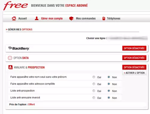 Free Mobile vient d’ajouter une nouvelle option dans l’espace abonné. Nommée « Annuaires et prospection » elle permet de gérer son inscription dans l’annuaire universel et de sélectionner quels types d’informations apparaitront. Cette option permet également de gérer son inscription sur la liste anti-prospection ainsi que sur la liste anti-annuaire inversé. Tous ces paramétrages sont bien sûr gratuits.