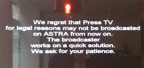 Le message suivant apparait : " We regret that Press TV for legal reasons may not be broadcasted on Astra from now on. the broadcaster works on a quick solution. We ask for your patience".