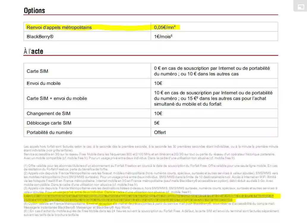 Auparavant, la grille tarifaire indiquait une facturation à 0,05€/mn pour le renvoi d’appels métropolitains, une option valable exclusivement en France métropolitaine. Renvoi d’appels vers les numéros fixes métropolitains (numéros en 01 à 05 et 09) et mobiles (06 à 07), à l’exclusion du renvoi d’appels vers les numéros courts, spéciaux, surtaxés et autres services à valeur ajoutée ainsi que vers l’étranger et l’Outre Mer qui est interdit. Il reste cependant à savoir s’il s’agit d’un oubli de la part de Free ou si cette fin de facturation est bien confirmée.