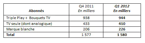 Concernant le mobile, le nombre d’abonnés a augmenté, passant de 47 000 à 51 000 abonnés entre le dernier trimestre 2011 et le premier trimestre 2012.