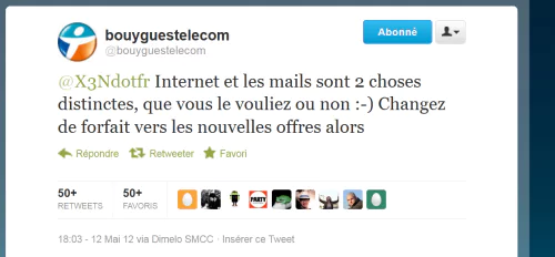 « Internet et les mails sont 2 choses distinctes, que vous le vouliez ou non Changez de forfait vers les nouvelles offres alors », voici les quelques lignes qui poussent Bouygues Télécom à éteindre l’incendie.