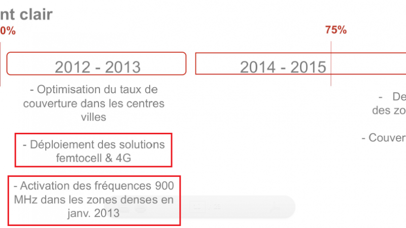 Ainsi, l’assemblée a présenté le prévisionnel chronologique de Free Mobile. D’ici 2013, Free devrait déployer des solutions femtocell et 4 G, activer les fréquences 900MHz dans les zones denses en janvier 2013.