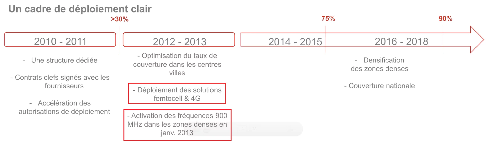Ainsi, l’assemblée a présenté le prévisionnel chronologique de Free Mobile. D’ici 2013, Free devrait déployer des solutions femtocell et 4 G, activer les fréquences 900MHz dans les zones denses en janvier 2013.