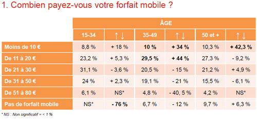 Le trimestre dernier, 28 % des 35-49 ans dépensaient moins de 20 € par mois pour leur forfait mobile. Ce trimestre, ils sont 40 % à avoir adopté ces offres avantageuses.