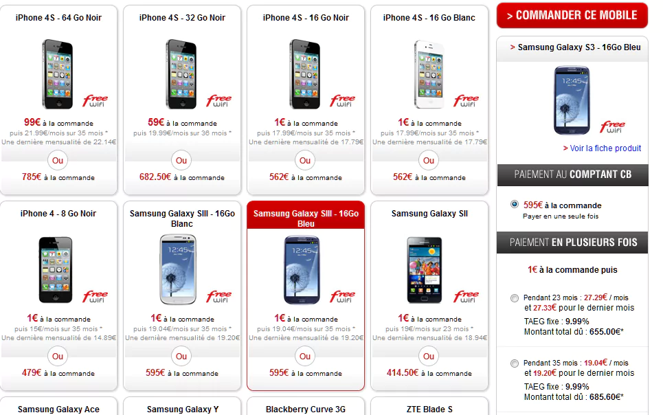 Pas de pénurie chez Free Mobile pour le samsung SIII Bleu !