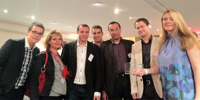 L’équipe de Free venue assister à la cérémonie et le trophée en verre tenu par Angélique Berge