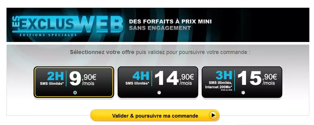 Exclu web 4h + SMS illimités à 14,90€ par mois sans engagement et sans mobile