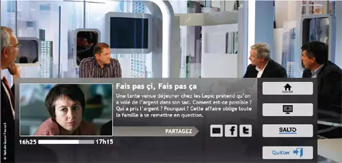 France Télévisions annonce le lancement de « Salto », une nouvelle fonction complémentaire au contrôle du direct et à la télévision de rattrapage. Ce service permet aux téléspectateurs de reprendre au début un programme en cours de diffusion. Actif uniquement durant la durée du programme (du générique de début jusqu’à celui de fin), ce service gratuit peut être utilisé à tout moment avec la possibilité de revenir au direct dès qu’on le souhaite. Le nom du service est en référence au « salto arrière »