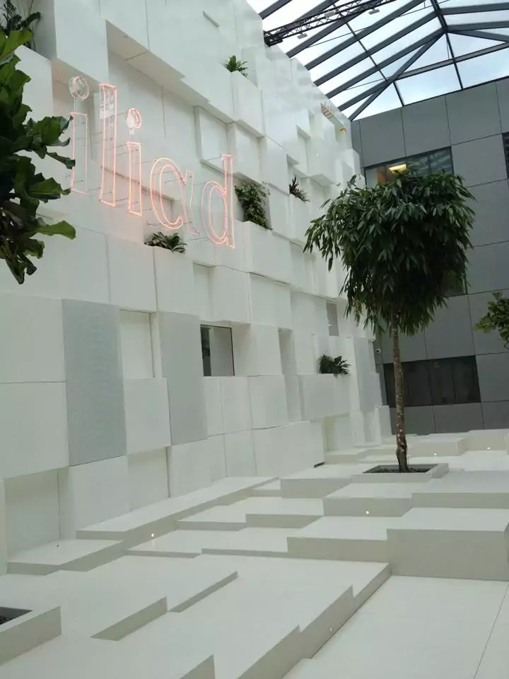 Avec l’arrivée le lancement des offres mobiles, Free a inauguré deux nouveaux centres d’appels à Vitry sur Seine et à Colombes. Angélique Berge, la directrice de la relation abonné, a posté sur sa page Facebook deux photos des locaux de Vitry, ou est implantée la filiale Qualipel. Comme on peut le constater, l’architecture intérieure est très design.