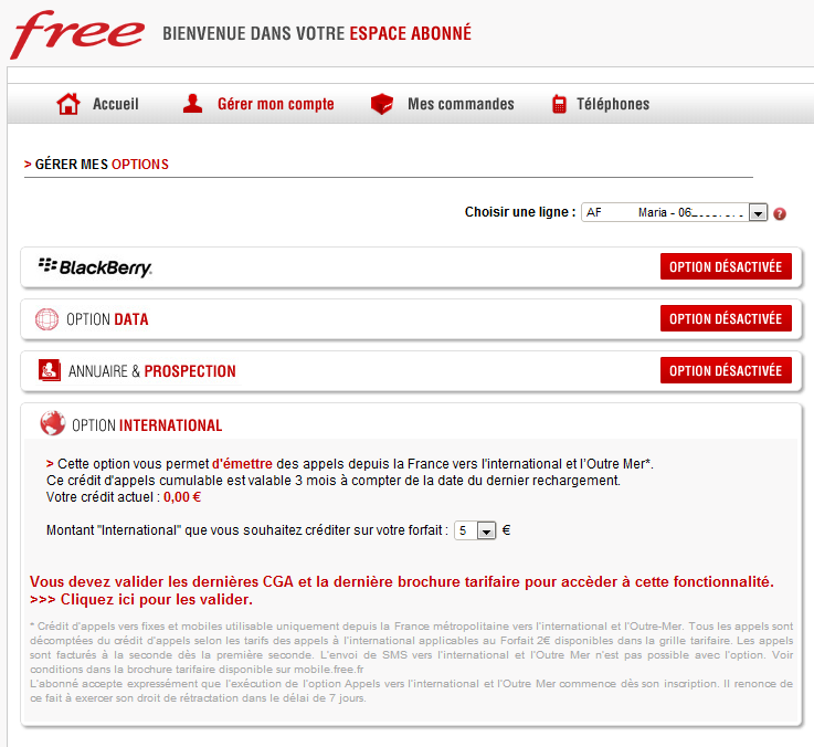 Cela dit, un bogue empêche actuellement la souscription. En effet, l’abonné Free Mobile est invité à validé les CGA pour pouvoir profiter de cette option. Il s’avère que le lien permettant la validation des nouvelles CGA renvoie à la page d’accueil de l’interface abonné Free Mobile empêchant ainsi toute validation de l’option.