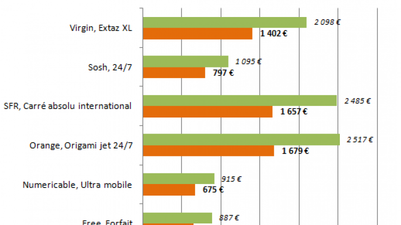 Quoi qu’il en soit, le consommateur doit regarder la chose de près. Le site lesnumeriques.com a récemment opéré un travail comparatif sur les différences de prix notamment sur le Samsung Galaxy Ace. Selon une offre de huit opérateurs, dont quatre qui séparent bien l’achat du téléphone et le prix du forfait, les offres de Free et Numericable, les moins chers, ont coûté 1.000 euros de moins que celle d’Orange et de SFR après 24 mois.