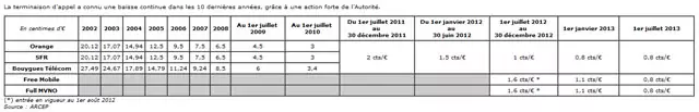 • une première baisse à un niveau de 1,6 c€/minute, à partir du 1er juillet 2012 pour six mois