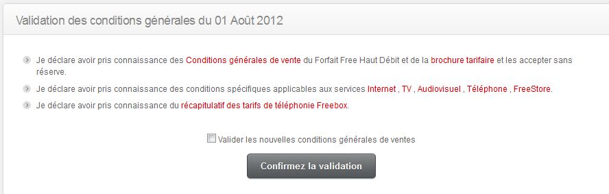 Mise à jour : les CGV à valider pour bénéficier de cette offre de téléphonie sont bien celles du 1er août 2012. L’assistance Free annonce pourtant la date du 01/08/2012