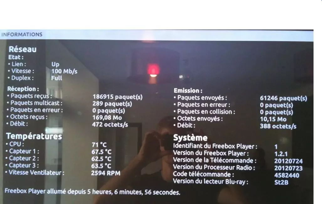 Données accessibles depuis la rubrique système – Player Univers Freebox au 1er aout 2012