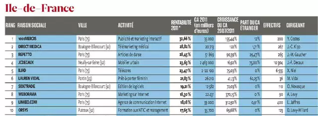 Le classement se fait par grande région. Et en Ile de France, Iliad se positionne en 5ème position, avec une rentabilité de 23,47%.
