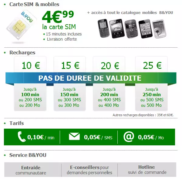 La marque low cost de Bouygues Télécom se lance des offres prépayées et proposera dès lundi des cartes sans limite de validité. Pour conserver sa ligne il faut toutefois réaliser au moins un acte payant par an. Xavier Niel avait annoncé en janvier dernier que Free travaillait lui aussi sur des offres prépayées, mais celles-ci ne sont toujours pas commercialisées.