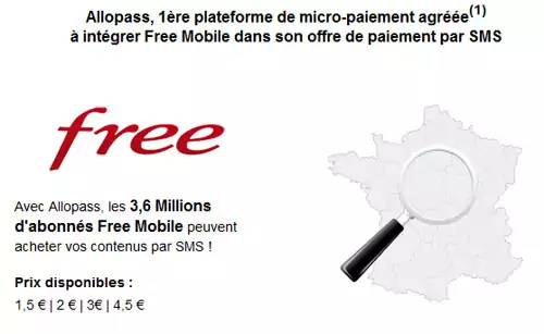 Allopass annonce être la 1ère plateforme de micro-paiement agréée à intégrer Free Mobile dans son offre de paiement par SMS. « Les 3,6 Millions d’abonnés Free Mobile peuvent acheter vos contenus par SMS » explique Allopass