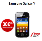 Dans son espace de vente des téléphones, Free Mobile propose depuis ce matin le paiement en 4 fois. Autre élément qui pourrait intéresser les freenautes qui souhaitent s’équiper d’un Samsung Galaxy Y, Samsung rembourse jusqu’à 30€ pour l’achat de ce terminal.