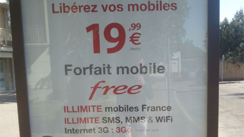 En cette rentrée, Free ne lésine pas sur les moyens pour communiquer sur ses offres mobiles. Après une campagne d’affichage que nous vous présentions la semaine dernière et une campagne de pubs TV, de nouvelles affiches ont fait leur apparition, sur le mobilier urbain cette fois-ci. Sur cette dernière publicité, qui a été photographiée par depinfo84 à Avignon, Free renoue avec les slogans. On se souvient de « Bénie soit la Freebox » ou encore « Il a Free, il a tout compris », cette fois-ci c’est « Libérez votre mobile »