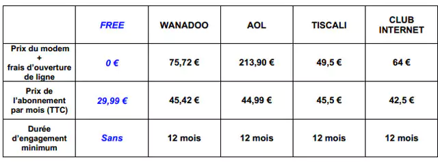 Modem USB fourni gratuitement (ou 2 mois d’abonnement offerts si l’internaute ne souhaitait pas de modem)