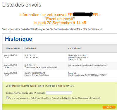 Ca bouge enfin du coté des envois d’iPhone 5 chez Free Mobile. Si la console de suivi de la commande n’indique toujours pas qu’elle a été envoyée, plusieurs Freenautes nous ont indiqué avoir reçu un SMS de Chronopost, qui gère les livraisons de mobiles pour Free.
