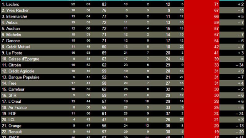 Chaque trimestre, La Matrice réalise avec Ipsos, un baromètre sur l’mage qu’ont les grandes entreprises françaises auprès du grand public. Ce baromètre est réalisé à partir d’un sondage qualitatif, qui a été réalisé cette fois-ci les 5 et 6 octobre 2012 sur un échantillon national représentatif de la population française, composé de 966 personnes âgées de 18 ans et plus. Il en découle un indice d’image correspondant à la différence entre le % des interviewés déclarant avoir une bonne image et le % des interviewés déclarant avoir une mauvaise image de l’entreprise.