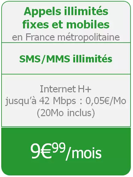 Forfait 24/24 Voix / SMS /MMS pour 9€99/mois sans engagement