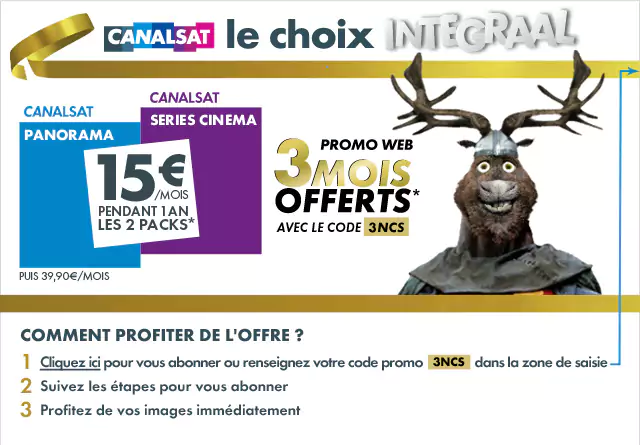 Pour en bénéficier, vous pouvez vous abonner directement depuis votre téléviseur, en vous rendant dans l’univers Canalsat et en indiquant le code promo 3NCS.