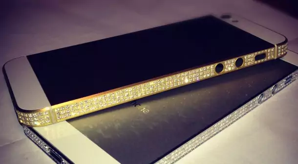 Il n’en existe que 50 exemplaires, un iPhone 5 de luxe est proposé par la société Amosu Luxury. Deux modèles existent l’un avec des contours en Or blanc, l’autre en Or jaune de 18 carats. Ils sont tous deux sertis de 815 diamants WS1 d’un total de 5,36 carats.