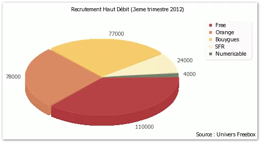 Orange a réussi à capter 320 000 abonnés et SFR 40 000. Pour conclure, Bouygues Télécom finit dernier avec 11 000 nouveaux abonnés (Là encore, l’opérateur a ajouté les clients de Darty Télécom et Simyo, ce qui porte à 178 000 le nombre total de clients ajoutés à son parc mobile au 3ème trimestre).