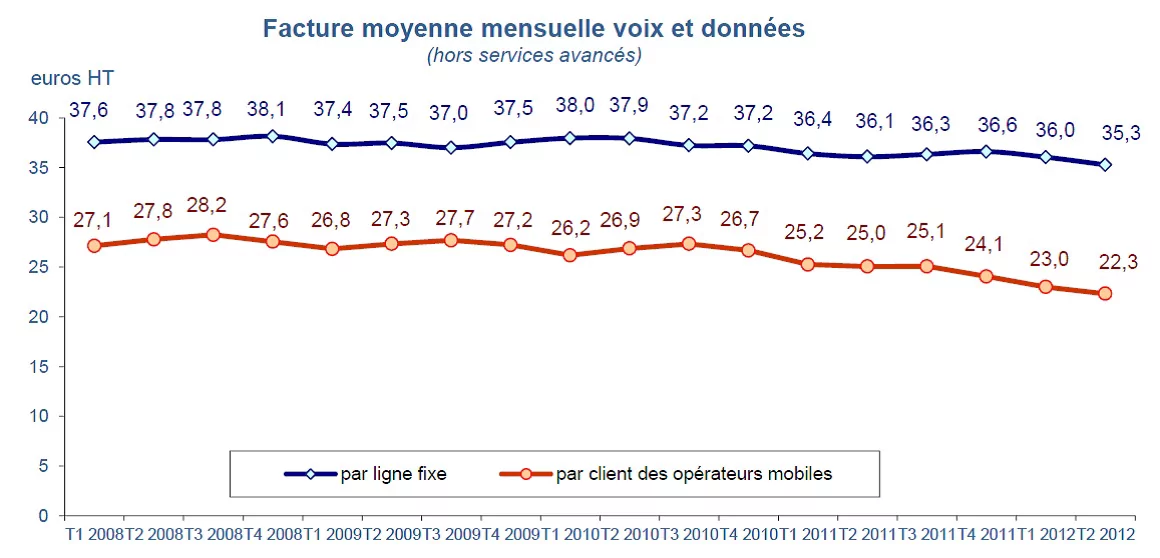 Les 1 800 000 abonnés ayant migré chez Free Mobile ont vu leur facture baisser de 16 € par mois en moyenne. Un abonné Free dépense environ 9.2 €uros par mois contre une moyenne de 25,3 € pour l’ensemble des opérateurs en 2011. Si l’ensemble des abonnées hors-opérateurs Free connaissent la même baisse, le pouvoir d’achat libéré serait donc estimé à 1731 millions d’euros par an.