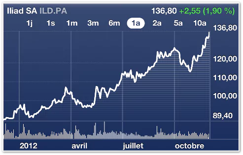 Croissance de l’action Iliad en 1 an (de 89,40€ à 136,80€)