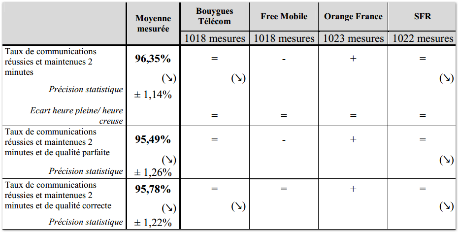 Service SMS (plus de 10 000 habitants, en extérieur) : Free Mobile, voisin ou inférieur à la valeur de référence :