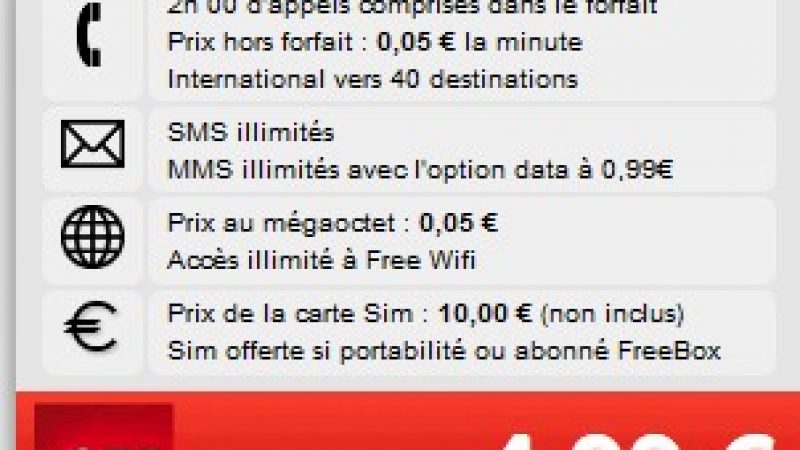 A noter également, qu’en terme de forfaits illimités, SMS, MMS, appels illimités et 3 Go de données, 3 opérateurs proposent un forfait similaire à Free. SFR, Virgin Mobile et B&You se sont alignés sur le forfait à 19,99 €. Orange reste à 49,90 € pour ce forfait.
