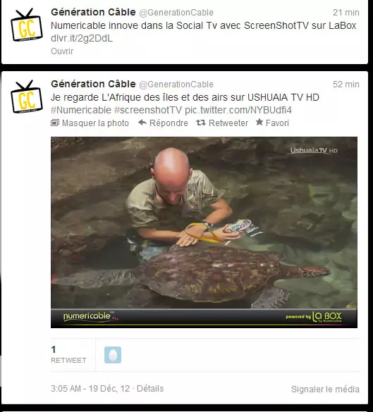 Numéricable améliore son application Twitter sur LaBox, en intégrant la fonction ScreenShot TV. Celle-ci permet de faire des captures d’écran du programme TV que vous regardez, et d’envoyer l’image sur votre compte Twitter. Si twitter depuis son téléviseur n’a pas un intérêt majeur, cette nouvelle fonctionnalité apporte au contraire un réel avantage.