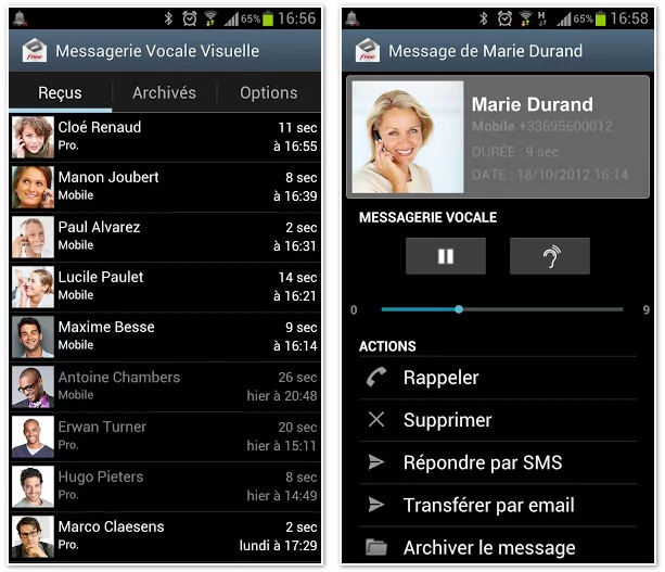Rappel : Il est impératif d’installer dans un premier temps l’application puis dans un second temps, activer l’option gratuite depuis l’espace abonné Free Mobile dans la rubrique « Mes Options ». Cliquez sur « Messagerie Vocale Visuelle », puis dans le menu déroulant, choisissez « Android ». Cliquez enfin sur « Activer l’option » et redémarrez votre téléphone Android. Vous devez disposer de la version Android 4.0 minimum.