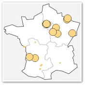 Aube, Côte-d’Or, Charente-Maritime, Dordogne, Essonne, Gironde, Haute-Garonne, Haute-Saône, Meurthe-et-Moselle, Meuse, Moselle, Seine-et-Marne, Tarn-et-Garonne, Territoire de Belfort, Val-de-Marne, Vienne, Yonne.