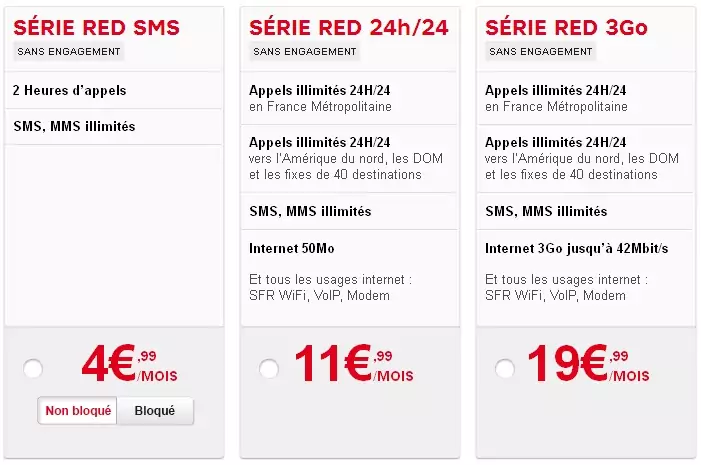 SFR à également réduit ses "Formules Carrées" de 10 € sur les forfaits comprenant voix et SMS Illimités ainsi qu’un accès internet qui va de 500 Mo à 6 Go / mois.