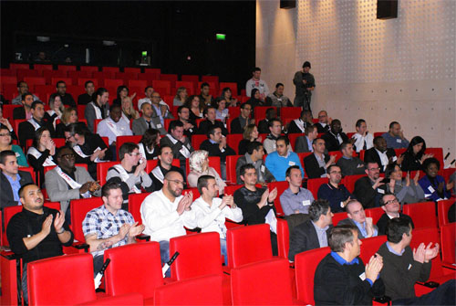 Dans l’auditorium du nouveau siège de Free, étaient donc présents les 42 salariés qui ont affiché les meilleurs performances en termes d’assistance et d’accueil tout au long de l’année 2012. Tous les services étaient concernés (3244, assistance mail, Free, Free Mobile, acquisition, etc.) et tous les centres de contact de Free : Paris (Centrapel), Colombes (Mobipel), Vitry (Qualipel), Marseille (Certicall), Bordeaux (Equaline) et Casablanca (Total Call/Resolution Call). Les conseillers étaient accompagnés par leurs Managers directs respectifs. Nous avons ainsi pu rencontrer par exemple de nombreux salariés des centres du Maroc, qui venaient à Paris pour la première fois pour certains, tous frais payés par l’opérateur. Si Casablanca peut sembler loin pour les Freenautes, nous avons pu constater que l’implication de ces salariés était la même que celle de leurs collègues français du Groupe. Certains nous ont confié qu’ils lisaient Univers Freebox chaque jour, participaient avec vous dans les commentaires, à leur initiative, et essayaient d’apporter leur aide.