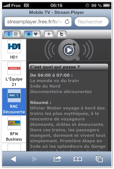 L’accès à Stream Player est possible sous Android, à condition de disposer au minimum de la version 3. La version 4 est recommandée par le site. Pour iOS, rendez vous à l’adresse indiquée via votre navigateur Safari.