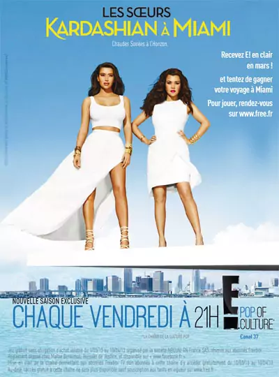 A l’occasion de la mise au clair de E ! du 10 mars au 10 avril sur le canal 37 de Freebox TV, la chaîne et Free lancent un jeu concours permettant de gagner un voyage à Miami. Pour participer, il suffit de répondre à un quizz, sur la page Facebook dédiée.