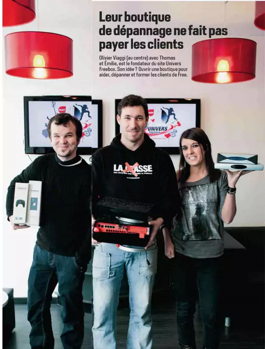 peu-adsl.fr et Univers Freebox. Tous ces sites ont pour objectif de vous aider en cas de problème. La particularité de l’association d’abonnés Univers Freebox est de proposer entraide et information en ligne mais également d’avoir transposé physiquement ces services dans un espace d’accueil pour les Freenautes : le Concept Store Univers Freebox. Celui-ci a été ouverts avant même que les premiers Free Centers ne soient lancés, pour dépanner et former gratuitement les abonnés, aux services de la Freebox. Trois permanents (qui sont également rédacteurs sur universfreebox.com) et plusieurs dizaines de bénévoles gèrent ce lieu d’accueil et d’assistance, avec l’appui de Free, qui nous permet d’avoir une ligne directe avec les techniciens de niveau 2 et nous met à disposition du petit matériel, afin de pouvoir procéder à un échange direct.