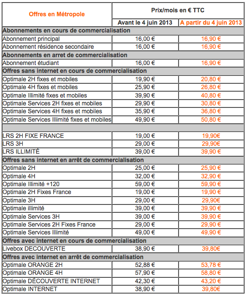 Les abonnés France Télécom dont les clients Free non dégroupés total vont voir leur abonnement augmenter au 4 juin 2013. Pour les abonnés disposant encore de la ligne fixe France Télécom/Orange il faudra compter 90 centimes de plus par mois, qu’il s’agisse de votre résidence principale ou secondaire.Mais c’est également l’ensemble des tarifs des abonnements de France Télécom qui prennent 90 centimes. L’opérateur rappelle que la dernière augmentation date de 2007 et l’explique par la hausse des coûts d’entretien des lignes téléphoniques et des services liés au service universel de téléphonie.