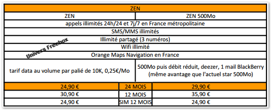 La gamme « ZEN », à partir de 24,90 euros par mois (carte SIM seule, engagement de 12 mois) :