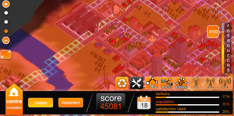 Le jeu est disponible sur Facebook depuis 24 heures. A la manière de Sim’s City, vous pourrez devenir opérateur réseaux fixe et/ou mobile. Vous pourrez déployer des lignes téléphoniques, un réseaux ADSL puis la fibre optique. Vous pourrez également installer au fûr et à mesure de votre évolution et votre déploiement un réseau 2G/3G/4G.