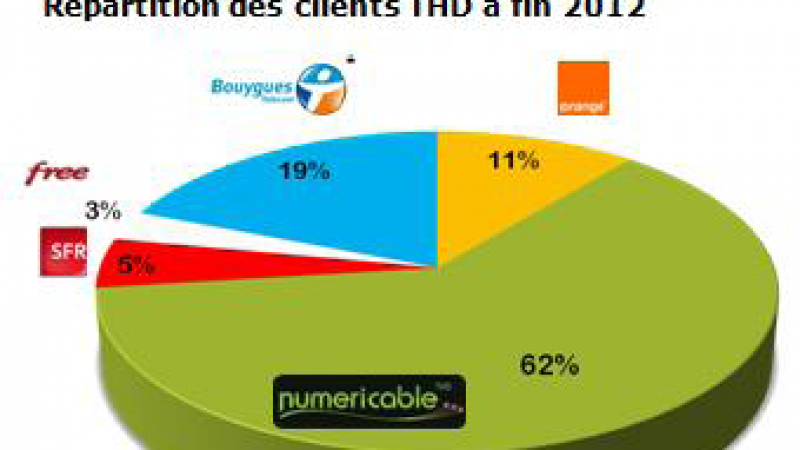 Depuis l’abaissement du niveau de reconnaissance du Très Haut Débit par l’ ARCEP et le gouvernement, Numéricable et sa technologie FTTB annonce une part de marché de 62 % de clients Très Haut Débit à la fin 2012. Le câblo-opérateur annonce 1 269 000 abonnés Très Haut Débit pour 4.8 millions de foyers raccordés.