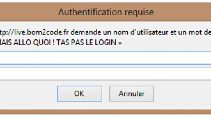 Le jeu de piste initié par Free n’est pas terminé ! Bien au contraire, au fil de nos recherches, nous avons découvert une nouvelle page sur le site Born2code : http://live.born2code.fr. Nous pouvons donc supposer que l’annonce de Xavier Niel sera retransmise, demain à 10h45, en direct depuis le siège d’Iliad. Pour accéder aux secrets cachés de la page, « le site http://live.born2code.fr demande un nom d’utilisateur et un mot de passe. Le site indique : « Non mais allo quoi ! Tas pas le login ».