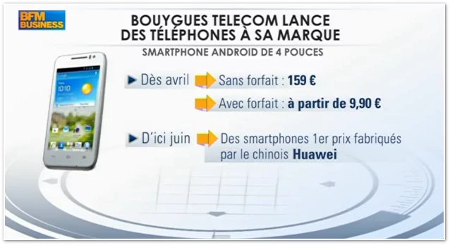 Par ailleurs, comme Orange ou SFR, Bouygues Télécom se lance dans l’aventure des smartphones sous sa propre marque dont un mobile 4G. Les premiers mobiles Huawei, d’entrée de gamme, seront disponibles courant juin 2013. Le jeu en vaut la chandelle pour Bouygues Télécom.